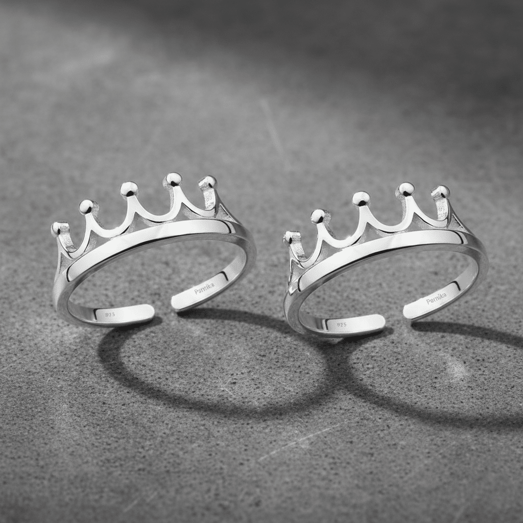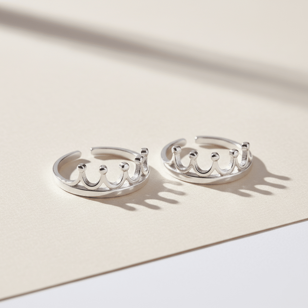 Our crown design toe rings combine traditional artistry with contemporary elegance. Each pair features an intricate crown-inspired design that symbolizes grace, dignity, and royal elegance. Whether you’re looking for statement jewelry or subtle accessories, these silver crown design rings are the ideal choice.