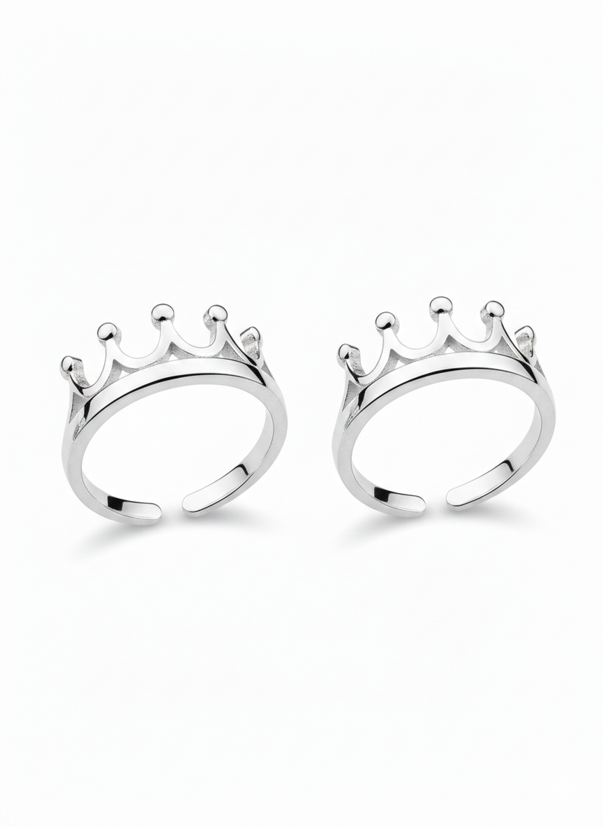 Crown Design Toe Rings in Sterling Silver – Authentic 92.5% Pure Silver Jewelry