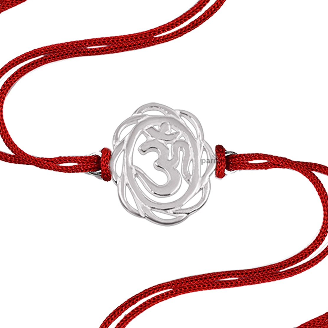 Parnika 925 Silver Rakhi in Cotton Thread Silver Rakhi Bracelet For Brother in Pure 92.5 Sterling Silver for Boys and Men | Chandi ki Rakhi | With Roli Chawal