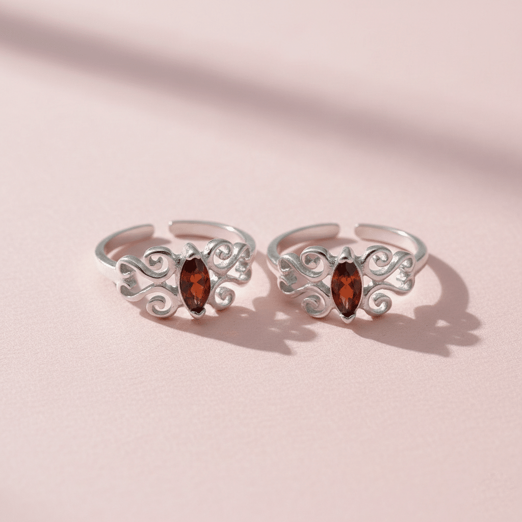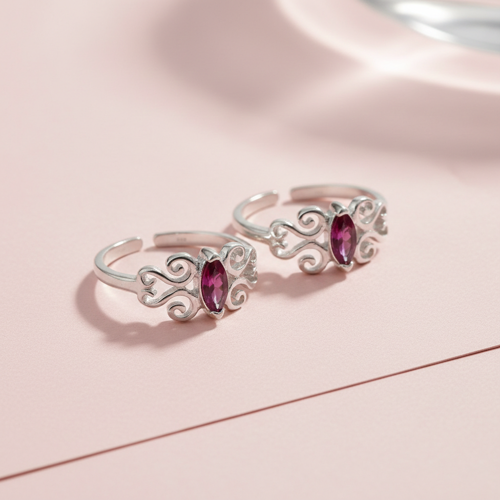 Our silver toe rings with an oval zirconia stone design are a perfect way to glam up your toes! Three lovely colors—White, Red, and Maroon—are contained in the beautiful oval zirconia stone design on these toe rings.