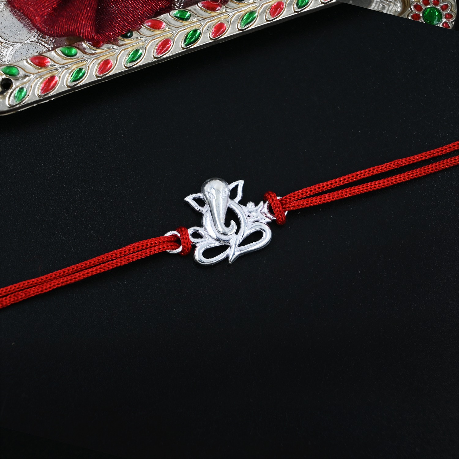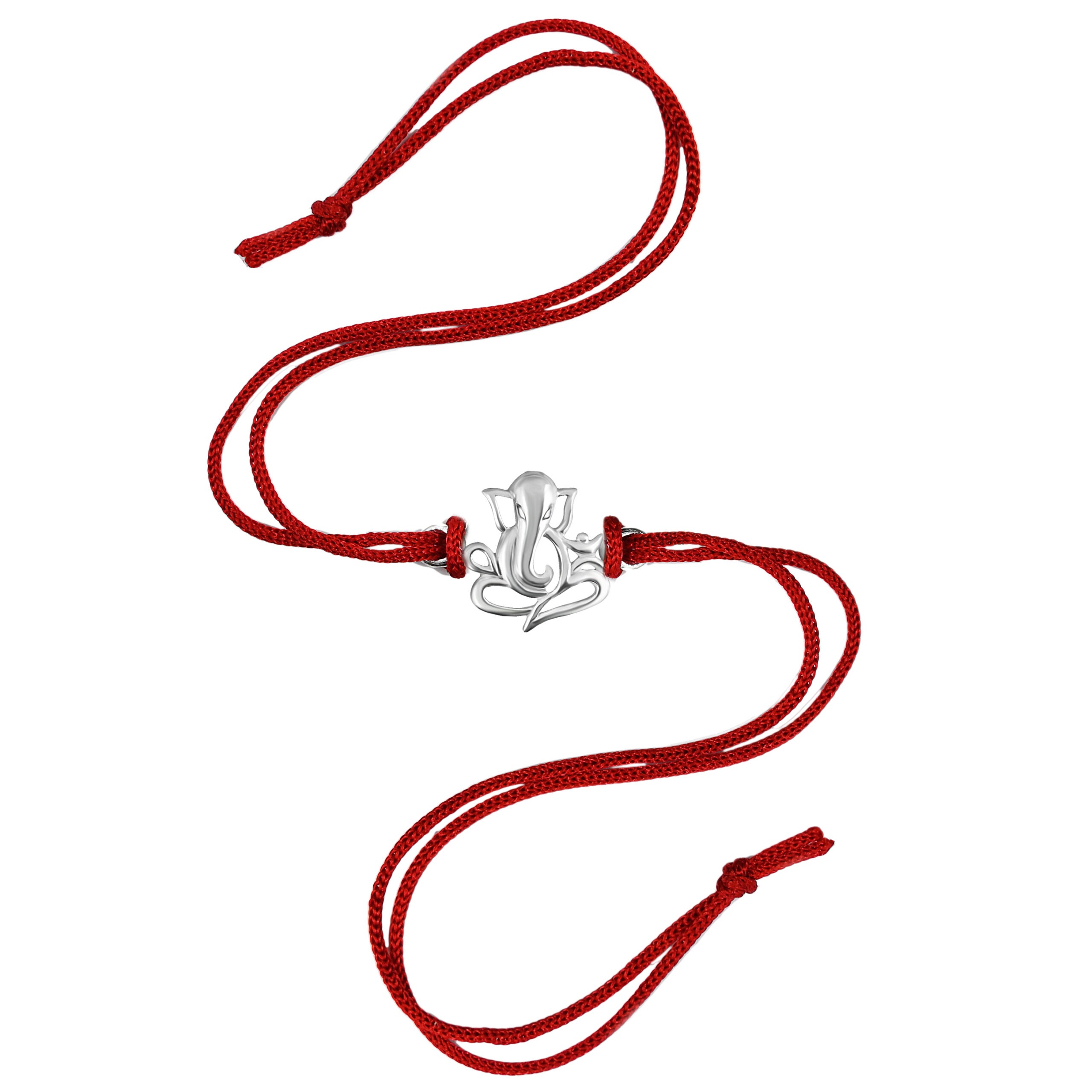 Parnika 925 Silver Rakhi in Cotton Thread Silver Rakhi Bracelet For Brother in Pure 92.5 Sterling Silver for Boys and Men | Chandi ki Rakhi | With Roli Chawal