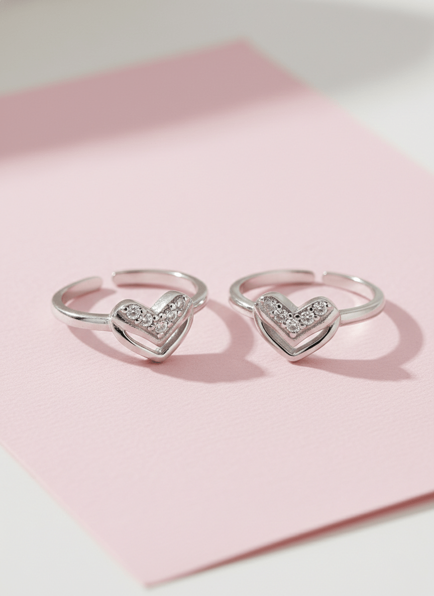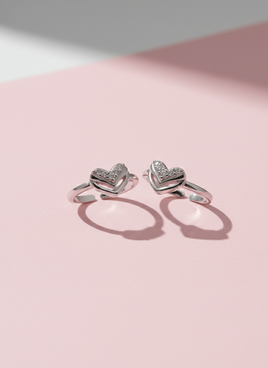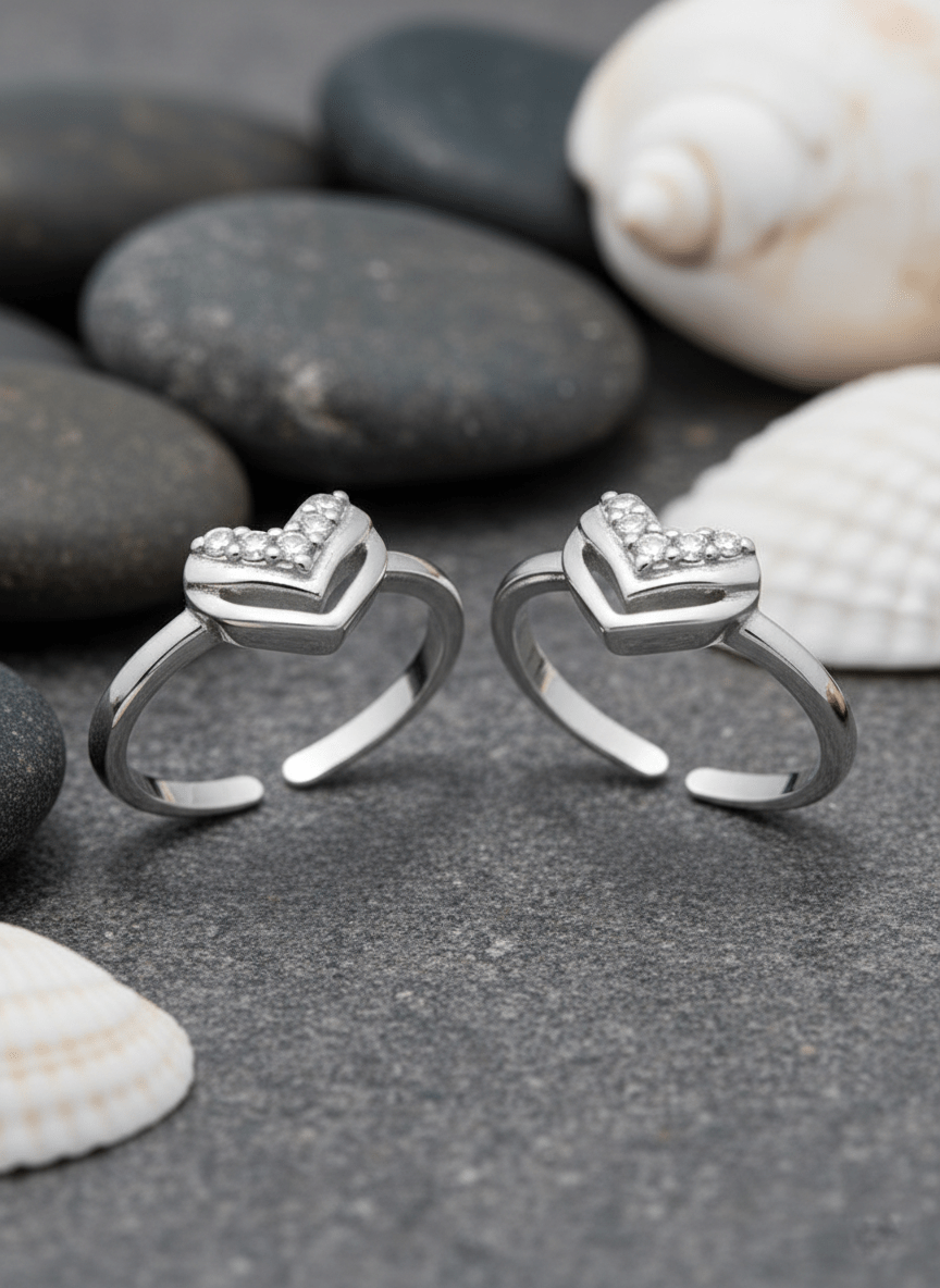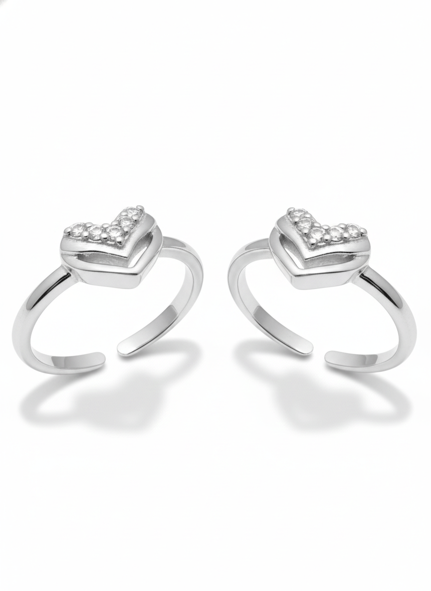Heart toe rings feature a beautiful heart-shaped cluster design perfect for adding elegance to your feet. These adjustable rings showcase six brilliant cubic zirconia stones arranged in a mesmerizing triple cluster pattern.