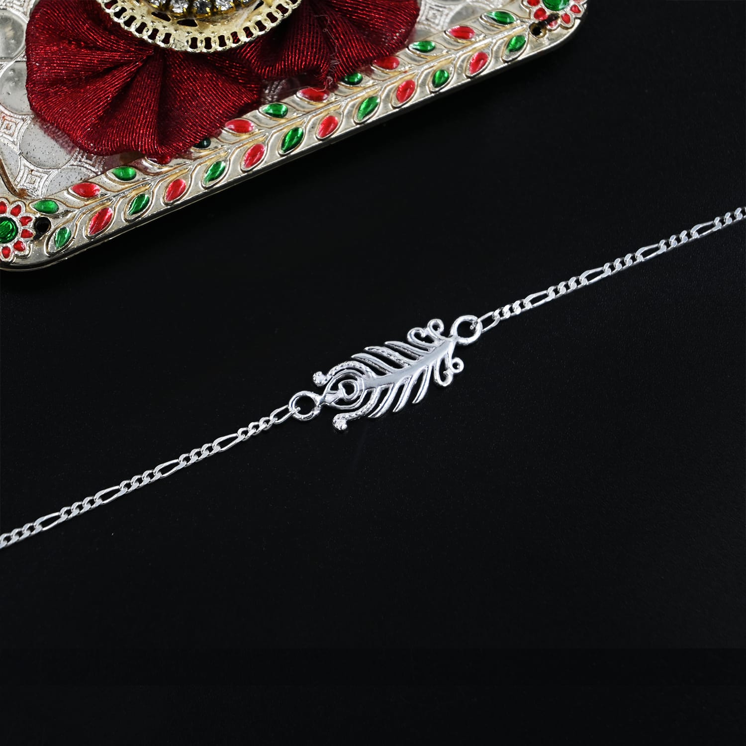 Invoke divine blessings in style with the CZ Ganesha Silver Rakhi Bracelet by Parnika, crafted in pure 92.5% sterling silver and tied with soft cotton thread. This elegant silver rakhi features a detailed Ganesha charm adorned with sparkling CZ stones—symbolizing wisdom, protection, and good fortune. Thoughtfully designed for boys and men, it blends tradition with sophistication, making it a meaningful keepsake your brother can wear beyond the festival. Complete with Roli and Chawal, this Chandi ki Rakhi is ready to make your Raksha Bandhan truly special.