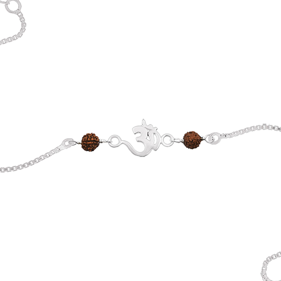 Celebrate the spiritual bond of Raksha Bandhan with the Parnika 925 Silver Om Rudraksh Rakhi Bracelet for Brother, a meaningful and elegant pure silver rakhi for brother. Crafted in 92.5 sterling silver, this rakhi features a sacred Om symbol alongside a natural Rudraksha bead, both set on a durable cotton thread. The design blends tradition and spirituality, offering blessings of peace, strength, and protection.