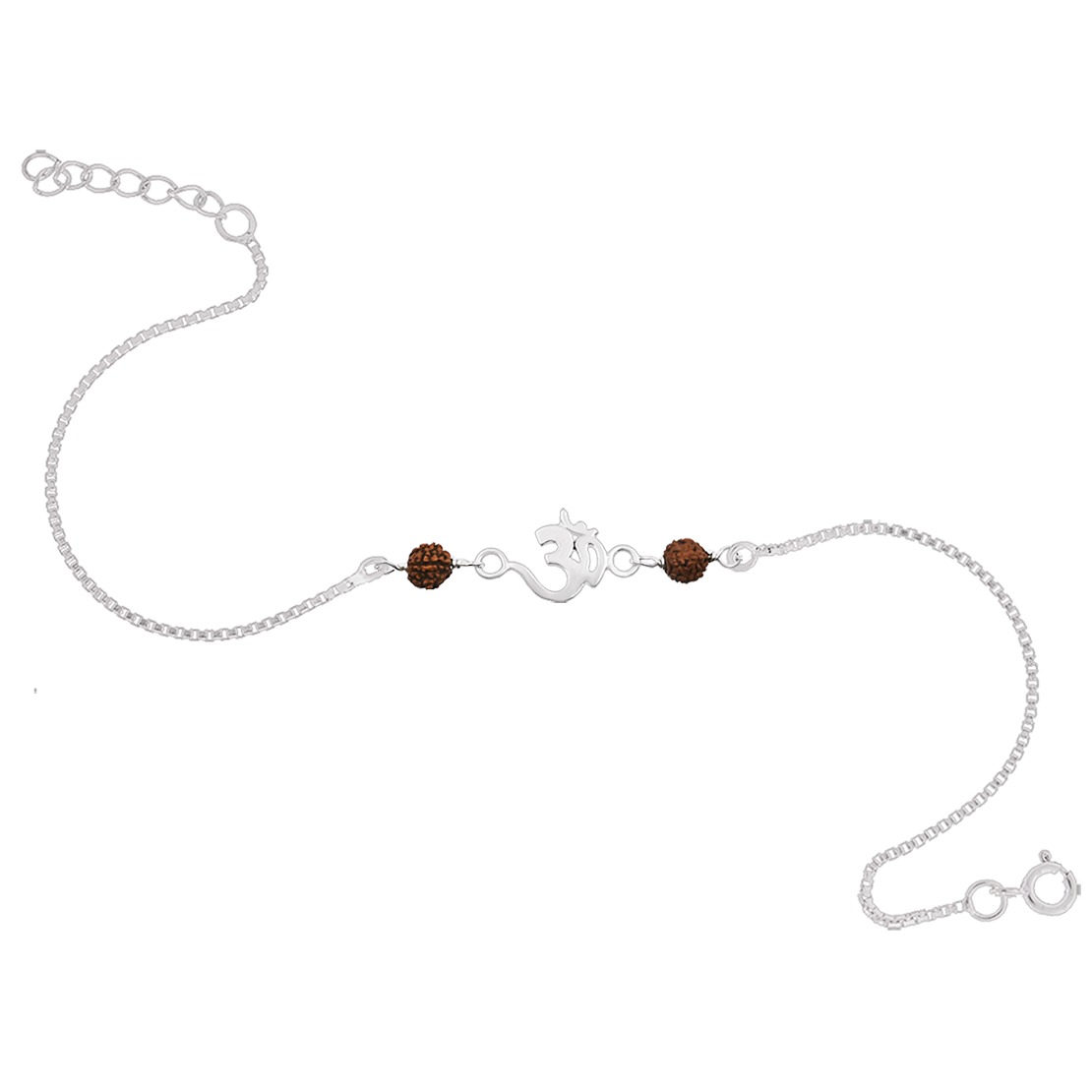 Om Rudraksh Rakhi Bracelet in silver for brother, Parnika 925 Silver Rakhi in Cotton Thread Silver Rakhi Bracelet For Brother in Pure 92.5 Sterling Silver for Boys and Men | Chandi ki Rakhi | With Roli Chawal