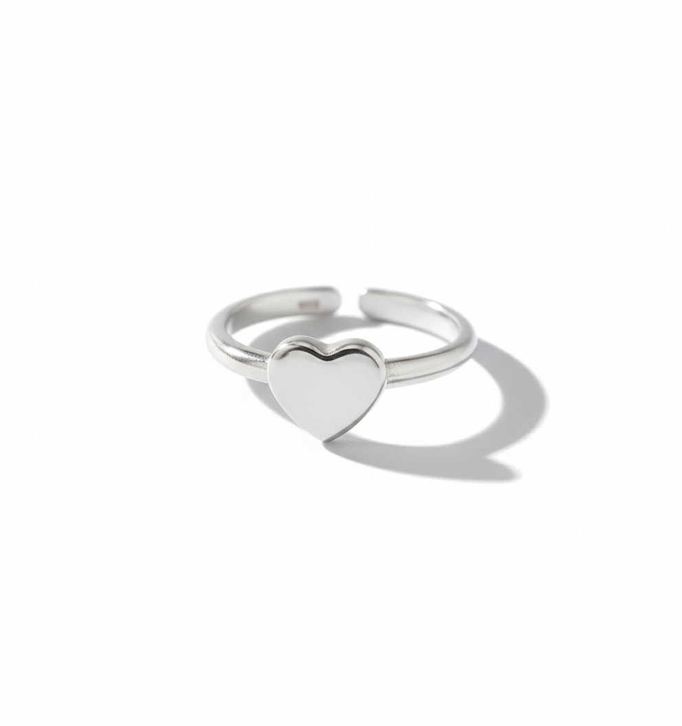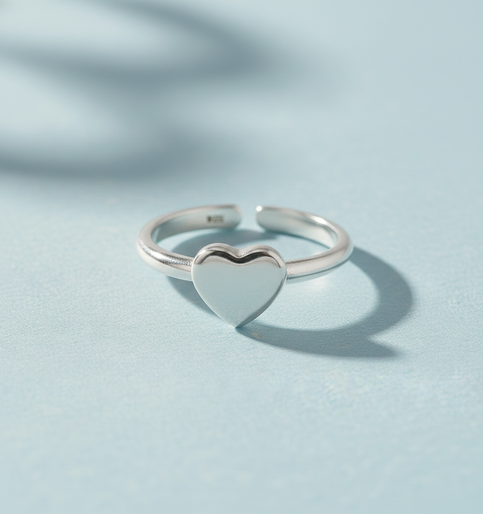 Parnika Cute Heart Design Adjustable Finger Ring in Pure 92.5 Sterling Silver for Kids & Girls
