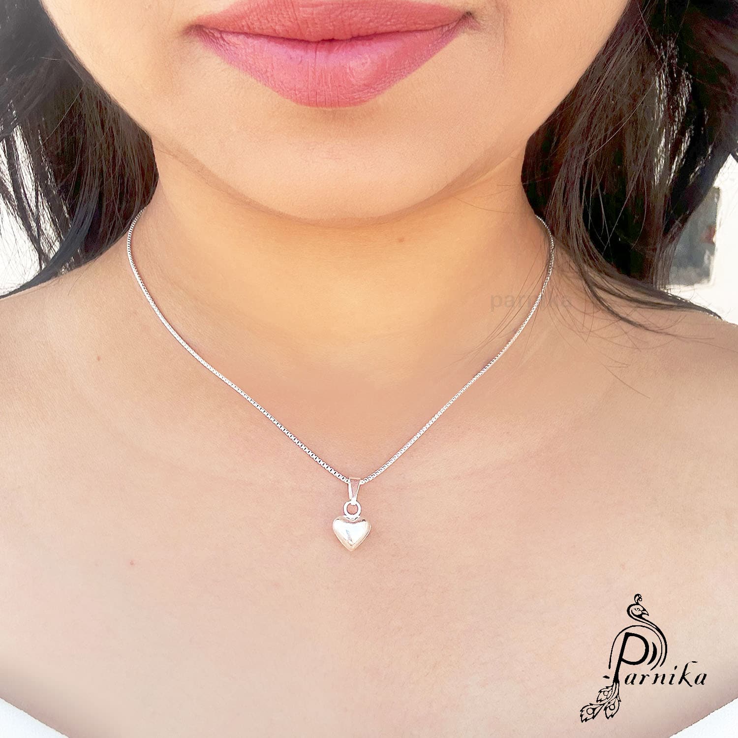 Add a touch of elegance and charm to your everyday look with the Parnika Trendy Tiny Silver Heart Necklace, crafted in pure 92.5 sterling silver. This delicate and minimalist piece features a petite heart pendant that symbolizes love, making it a perfect gift for yourself or someone special.