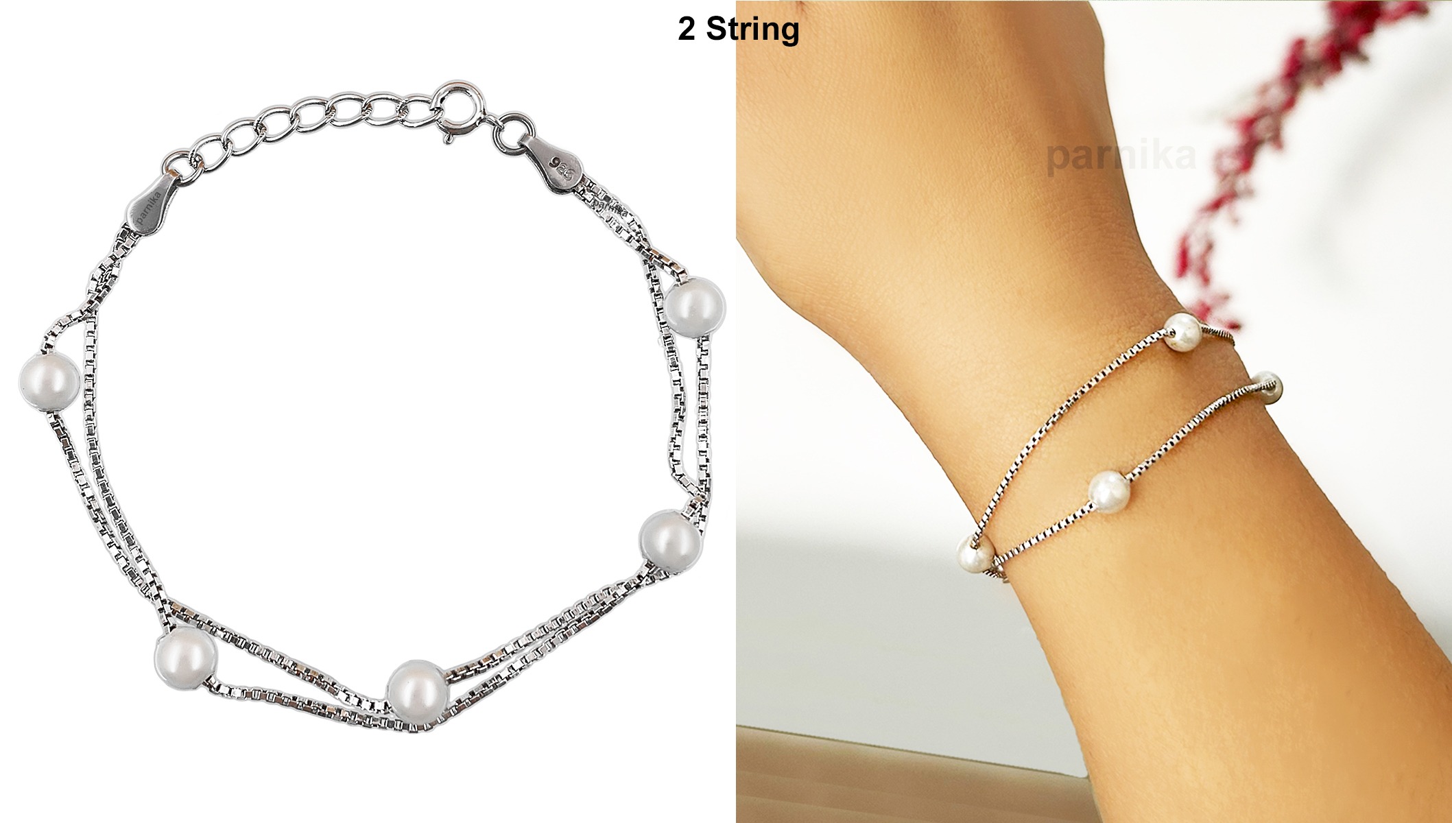 Pearl Stringed Bracelet in Silver