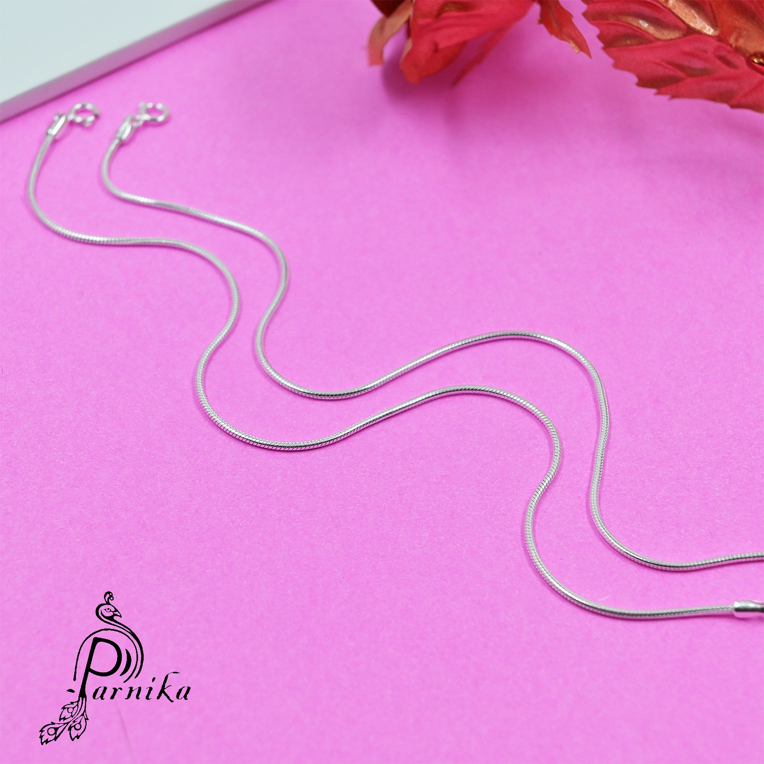 - Serpentine Simplicity:This anklet payal silver design features a plain chain inspired by the smooth and elegant movement of snakes. Embrace the serpentine simplicity that adds a touch of exotic allure to your ankle adornment.