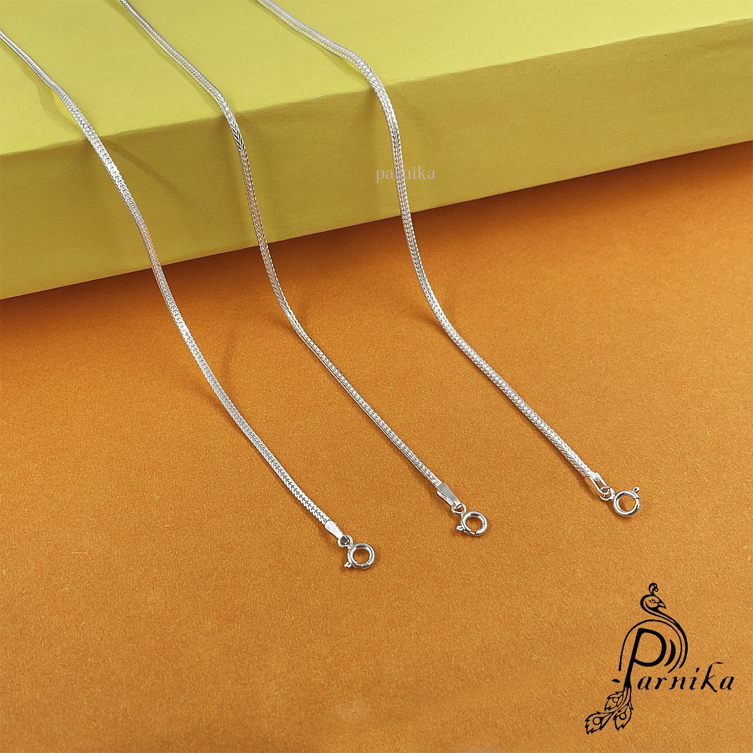 Parnika 925 brings to you the fox chain in pure 92.5 sterling silver for kids, boys, girls, women and men. This chain is flexible and comfortable for regular use. You can team this chain with casuals of your choice to get a complete look.