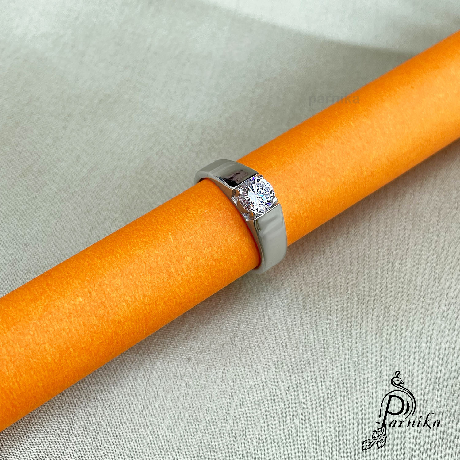 Parnika Solitaire CZ Adjustable Finger Ring in Pure 92.5 Sterling Silver for Men. This finger ring can be adjusted as per your comfort.