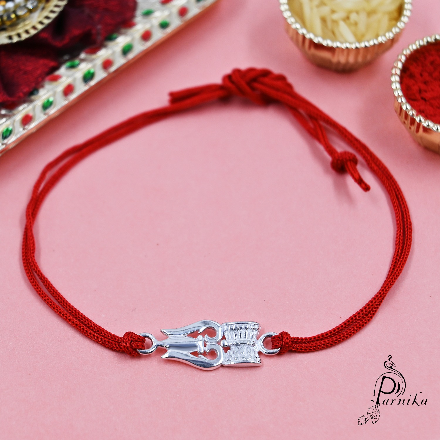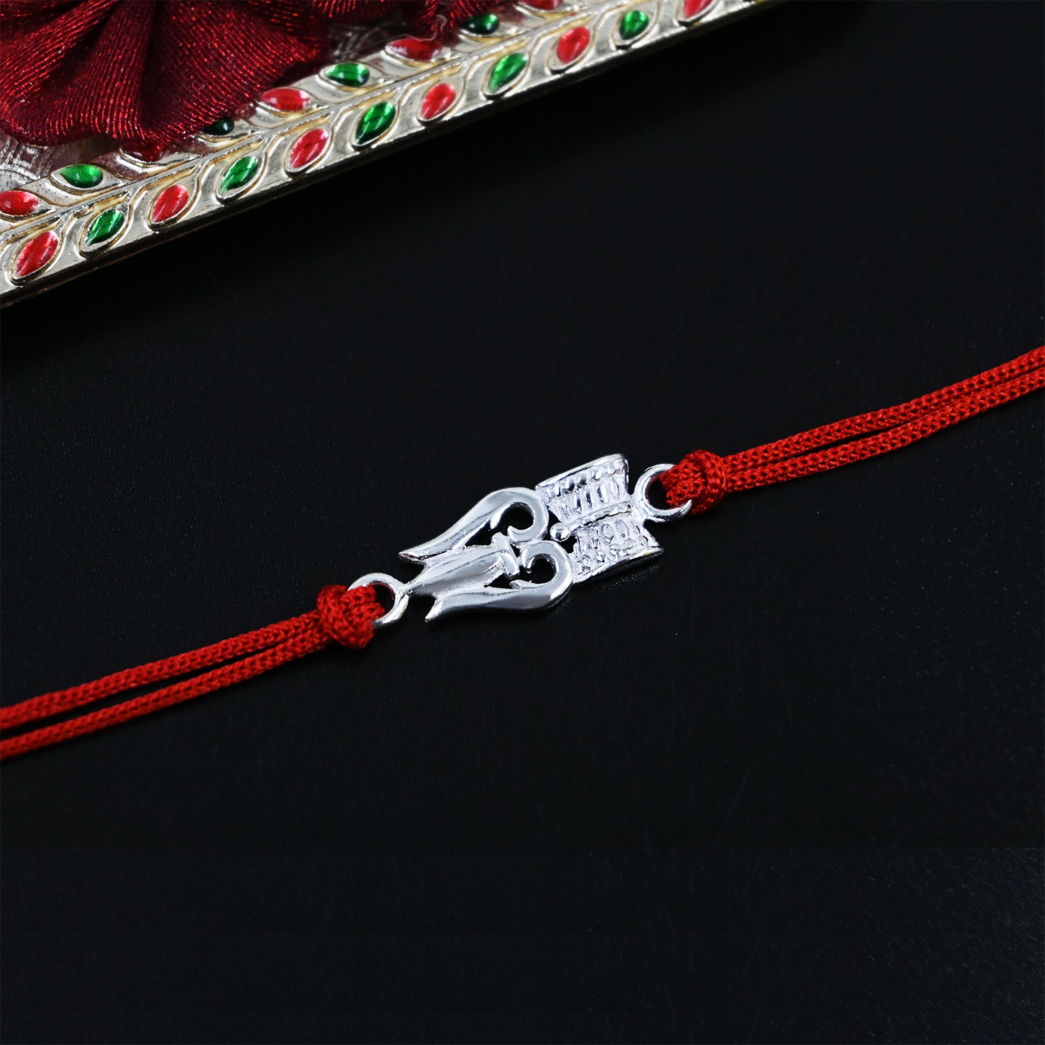 Parnika 925 Silver Rakhi in Cotton Thread Silver Rakhi Bracelet For Brother in Pure 92.5 Sterling Silver for Boys and Men | Chandi ki Rakhi | With Roli Chawal