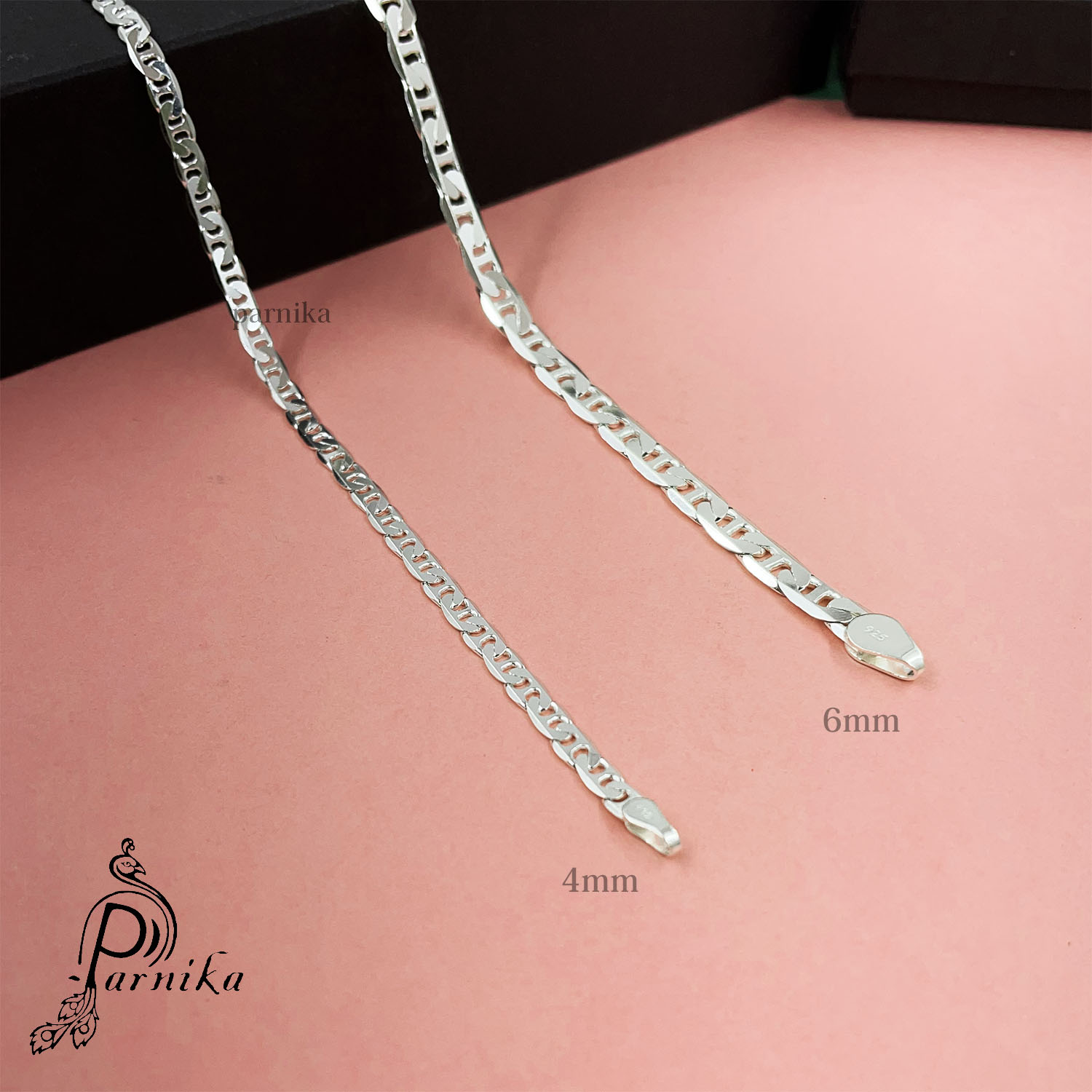 Parnika presents Unisex Marina Design Pure 92.5 Sterling Silver Chain for Girls, Women, Boys & Men. Chains of various thickness and lengths to fulfill your needs. Note: Images are enlarged for better viewing.